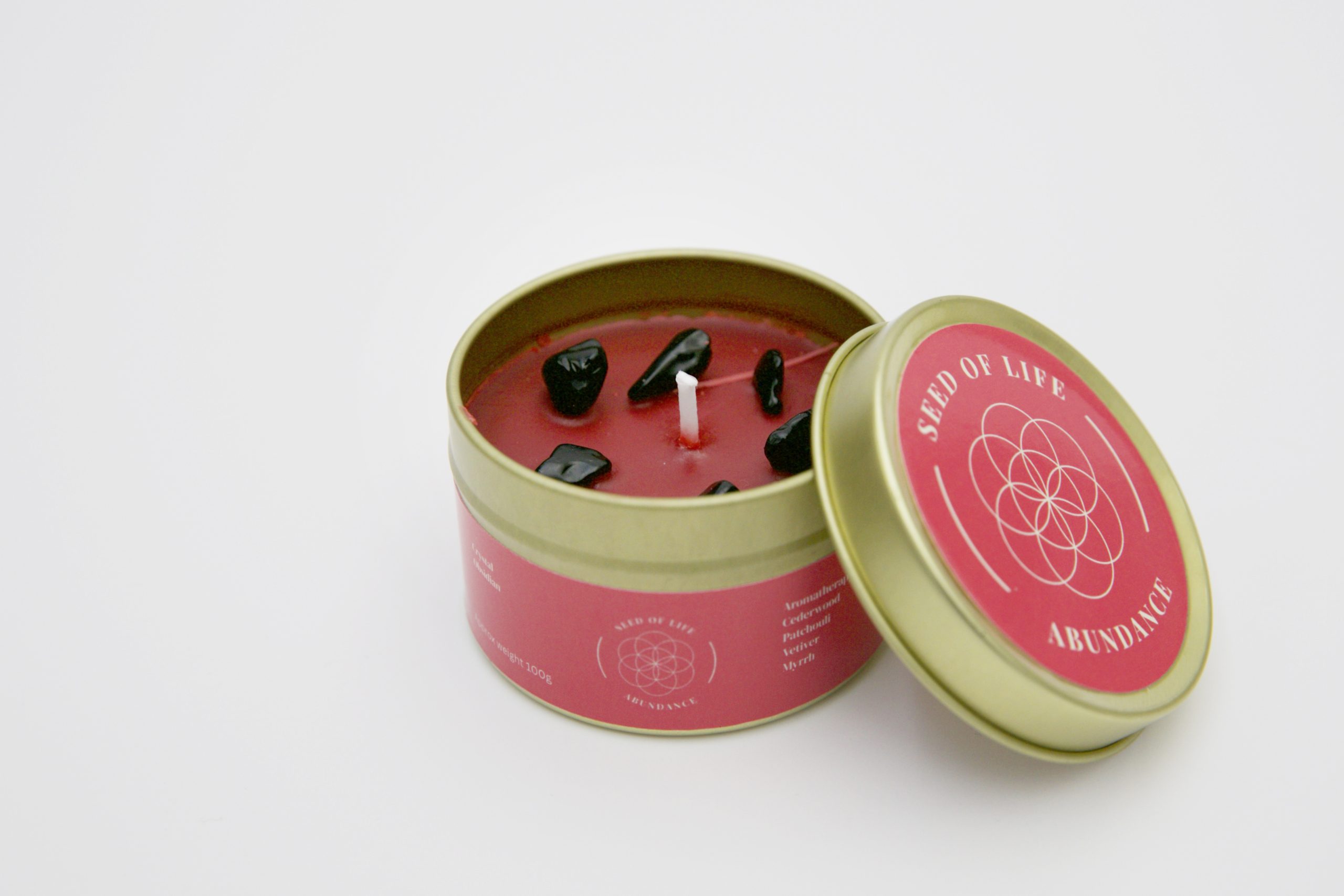 - Red – Seed of Life – Abundance, a blend of Cederwood, Patchouli, Vetiiver & Myrrh. Crystal – Obsidian