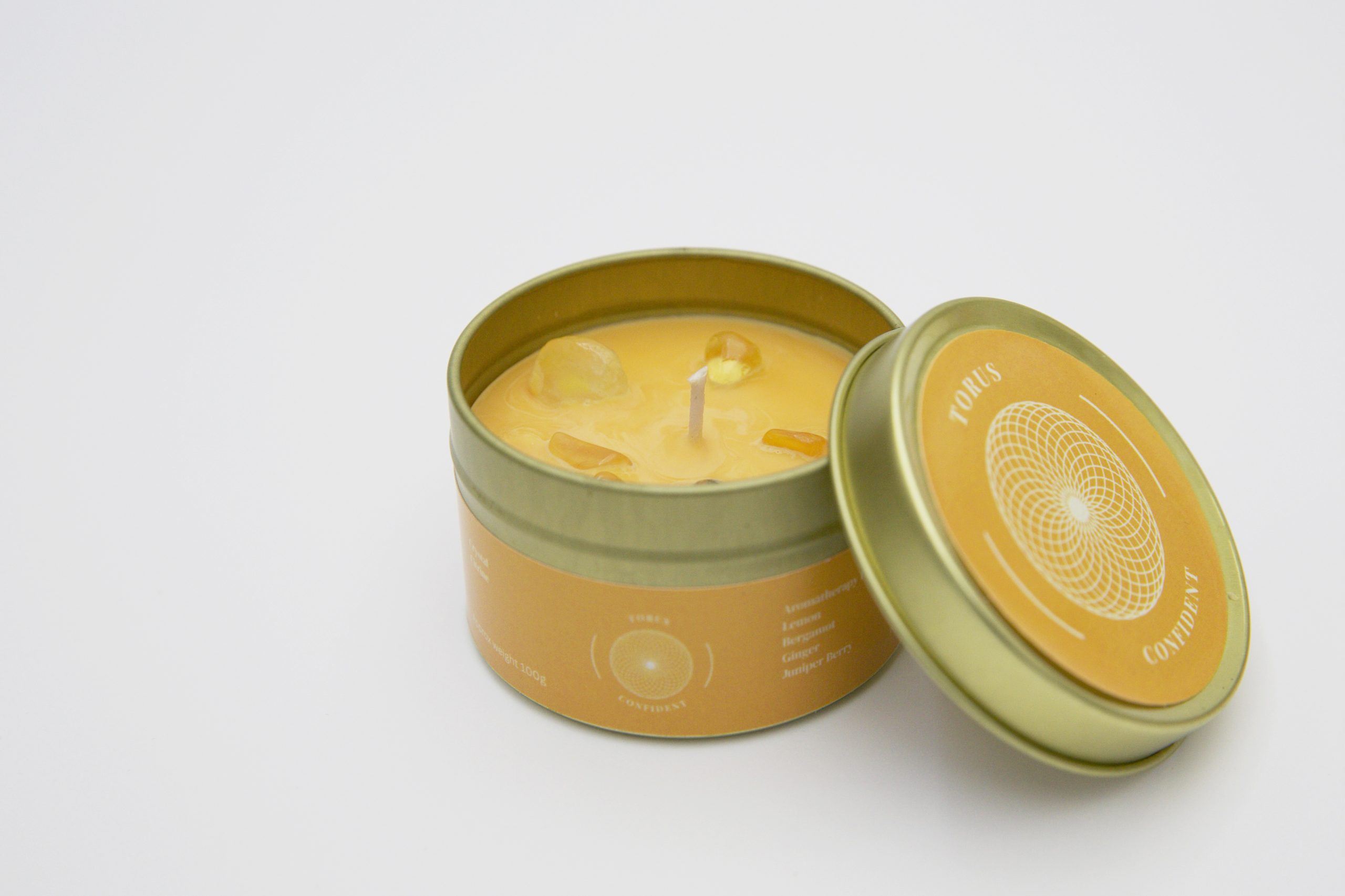 - Yellow – Torus – Confidence, a blend of Lemon, Ginger, Juniper Berry. Crystal – Citrine