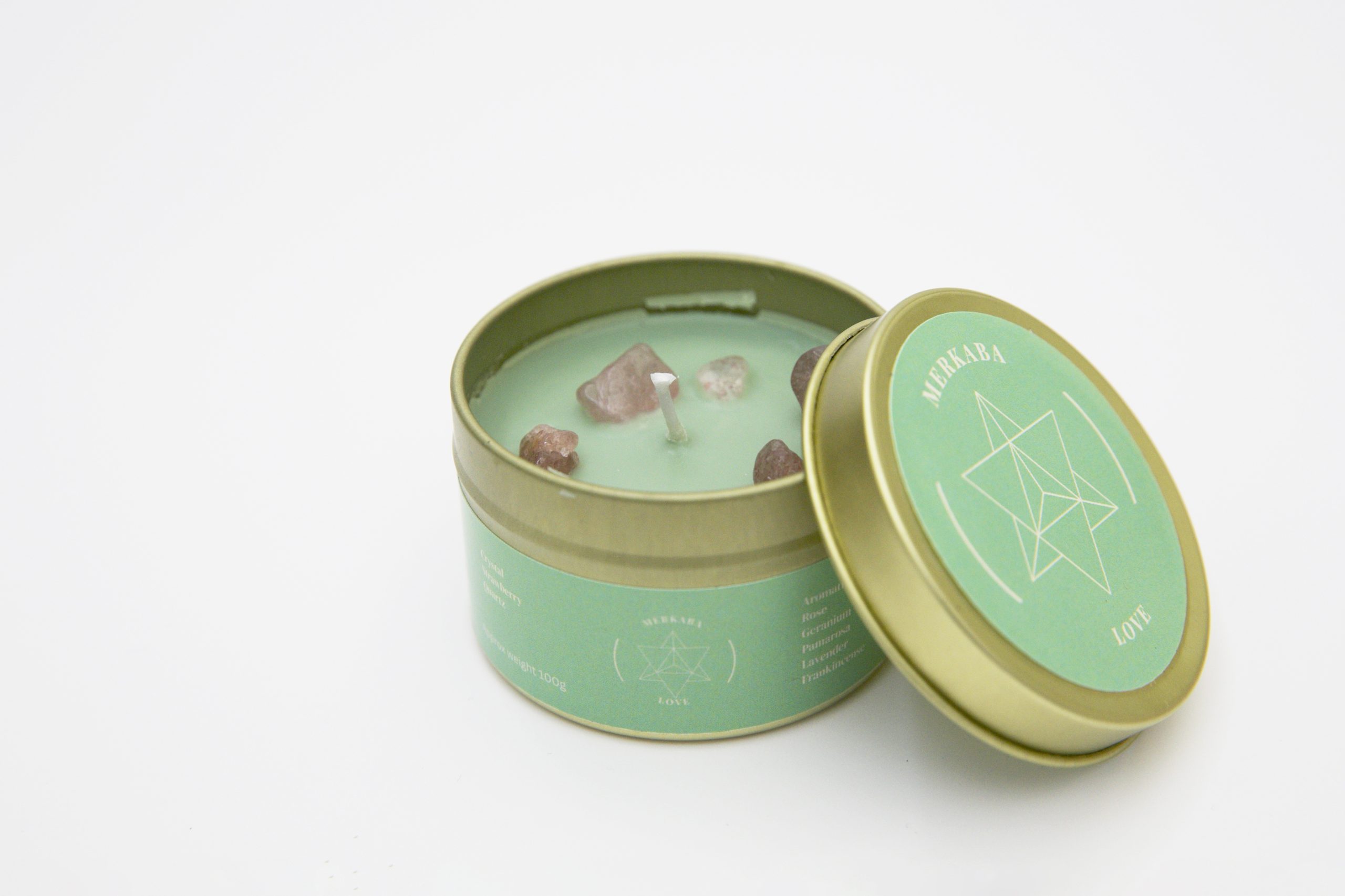 - Green – Merkaba – Love, a blend of Rose, Geranium, Lavender, Frankincense. Crystal – Strawberry Quartz
